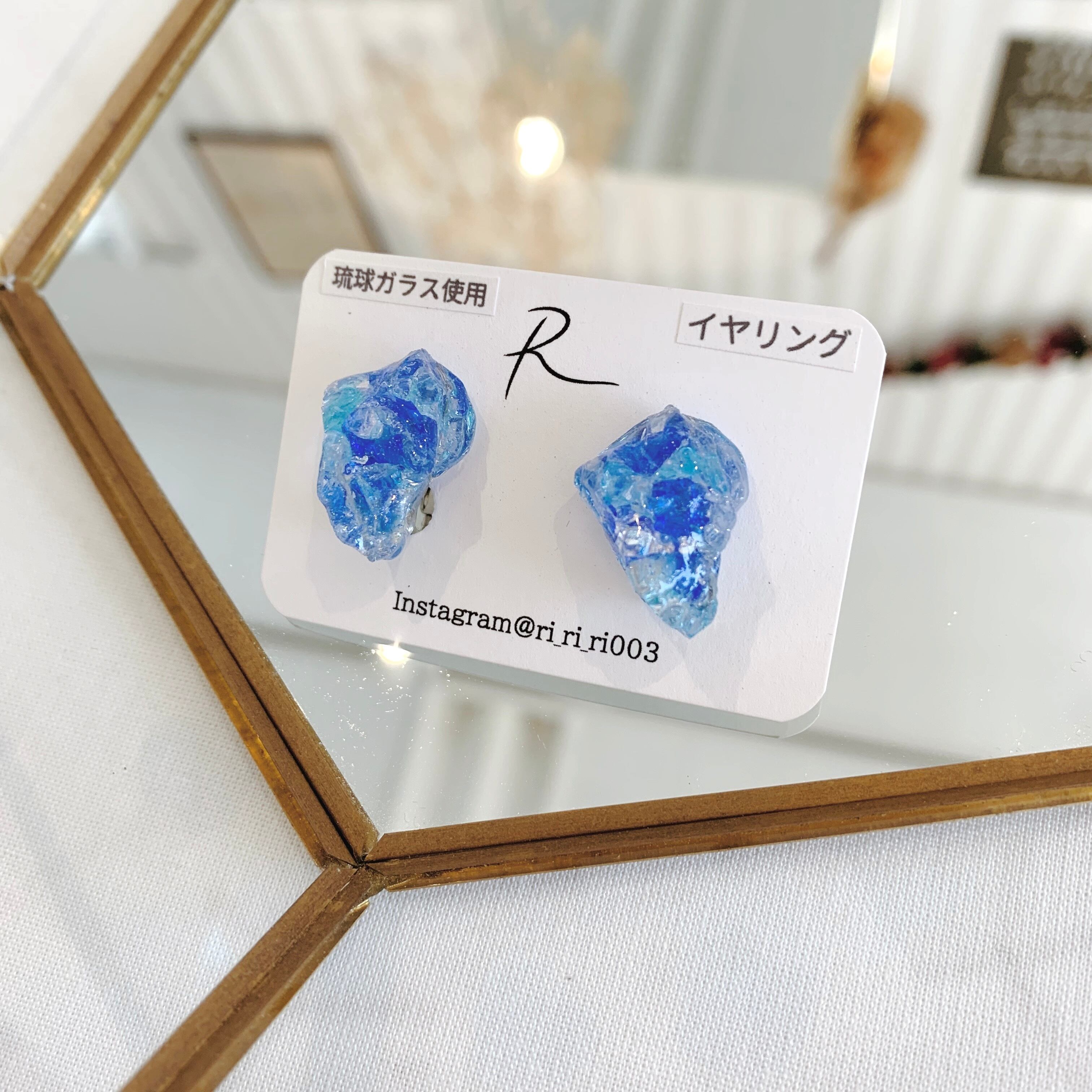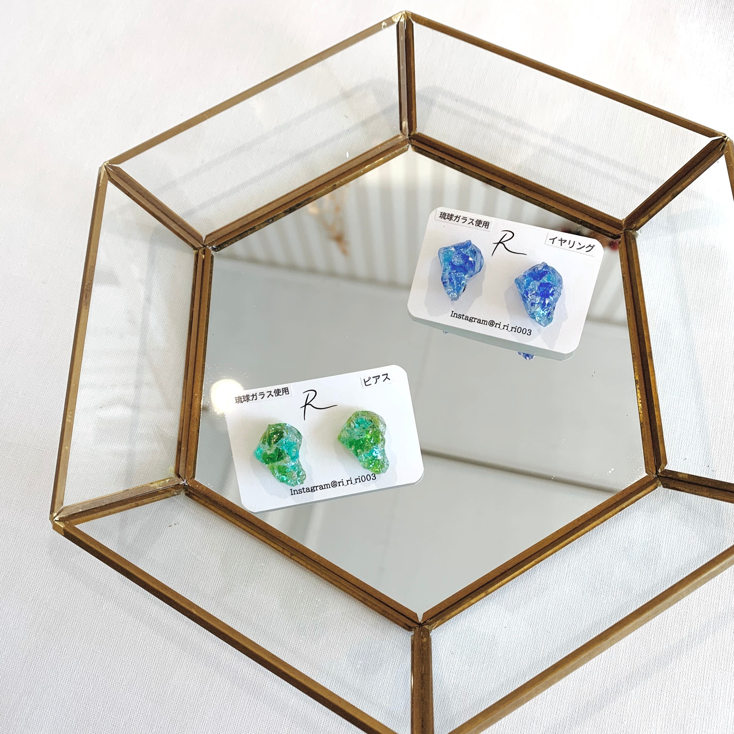 琉球ガラス入り鉱石型イヤリング 91