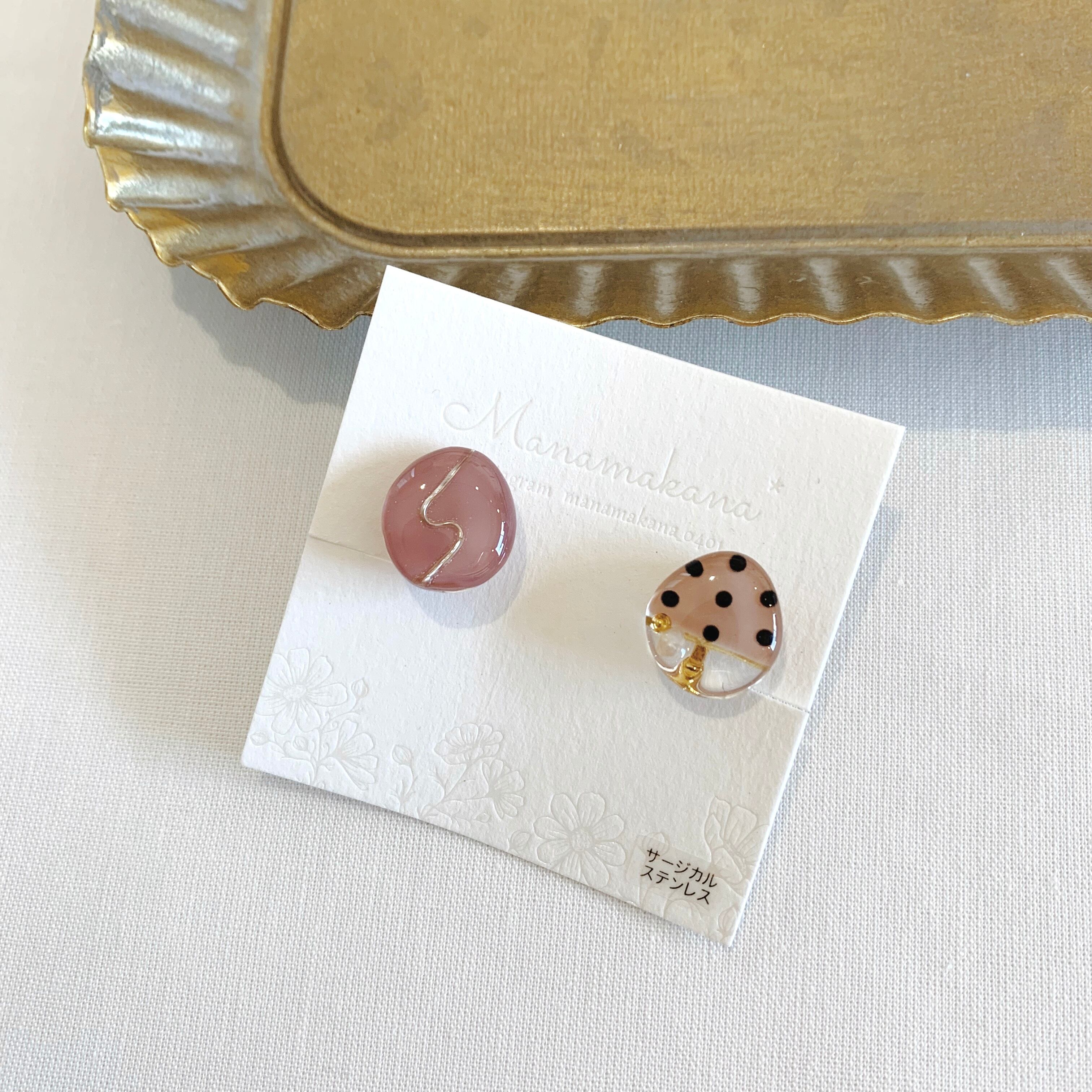 水玉とミラーデザイン イヤリング 52