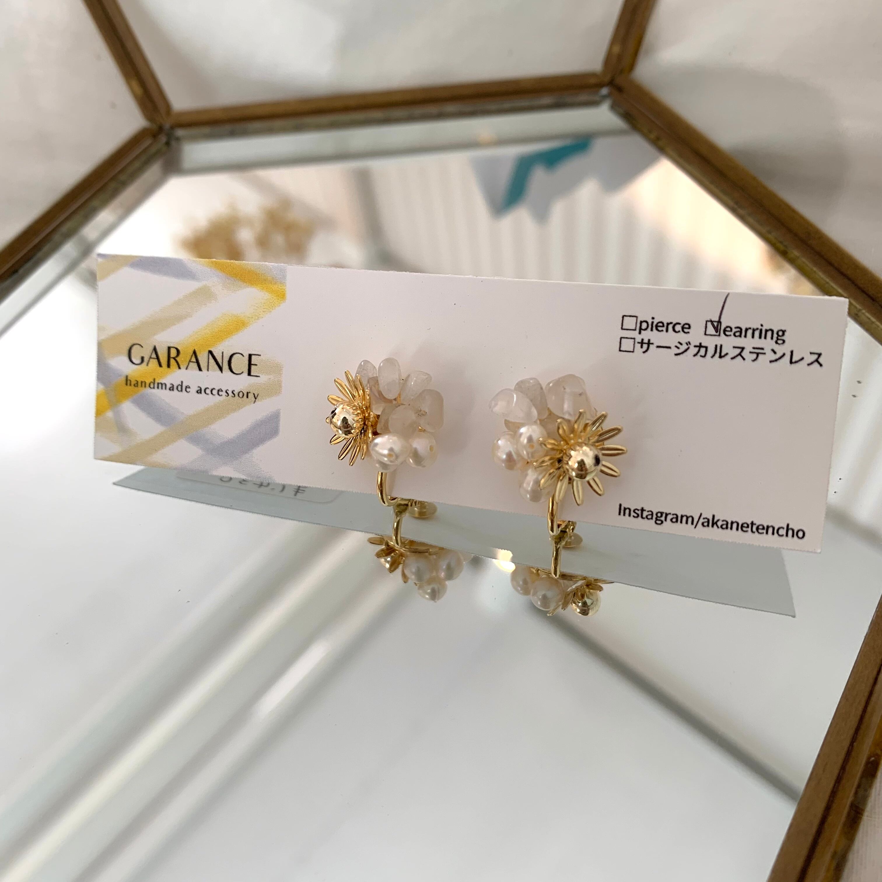天然石と淡水パールのプチブーケイヤリング 127