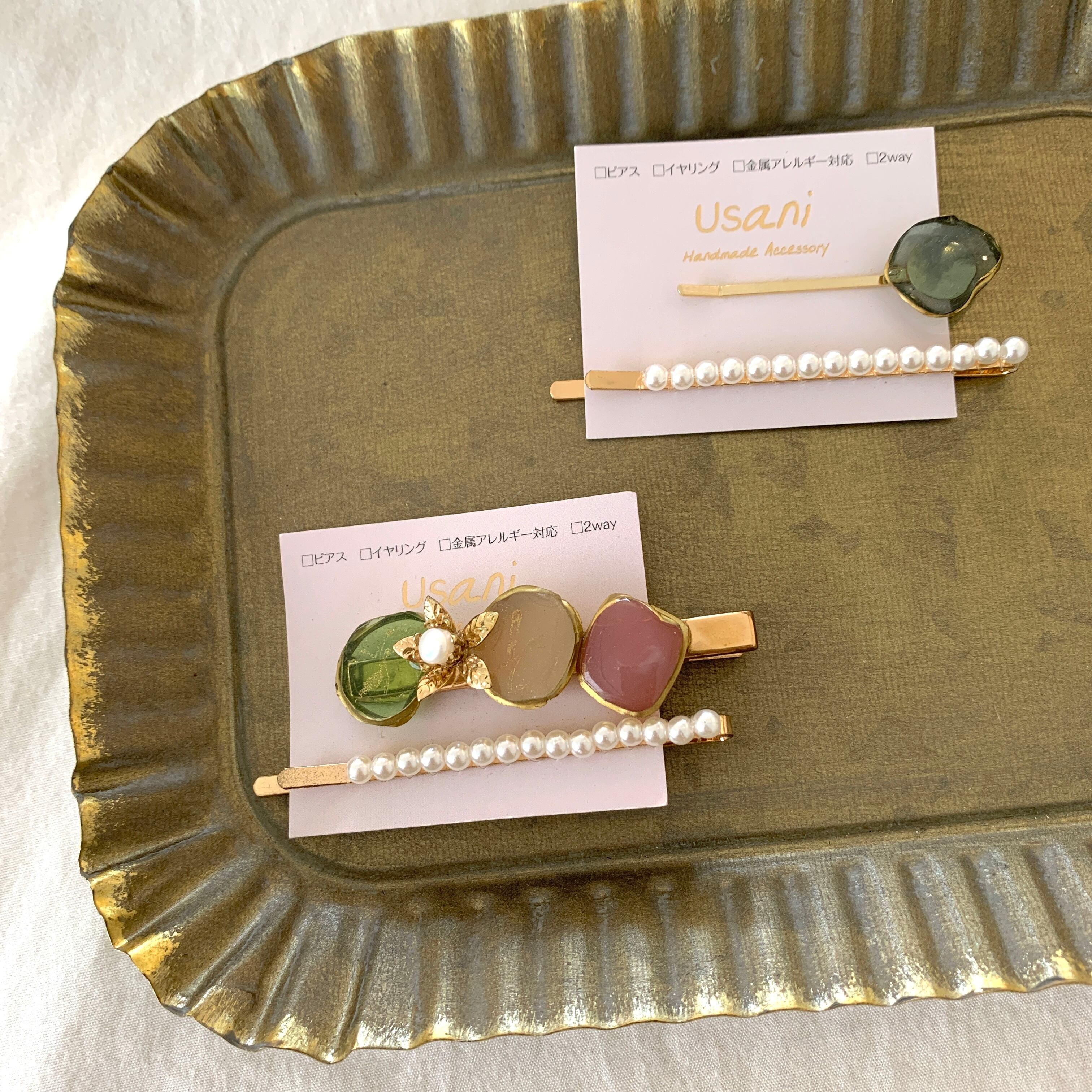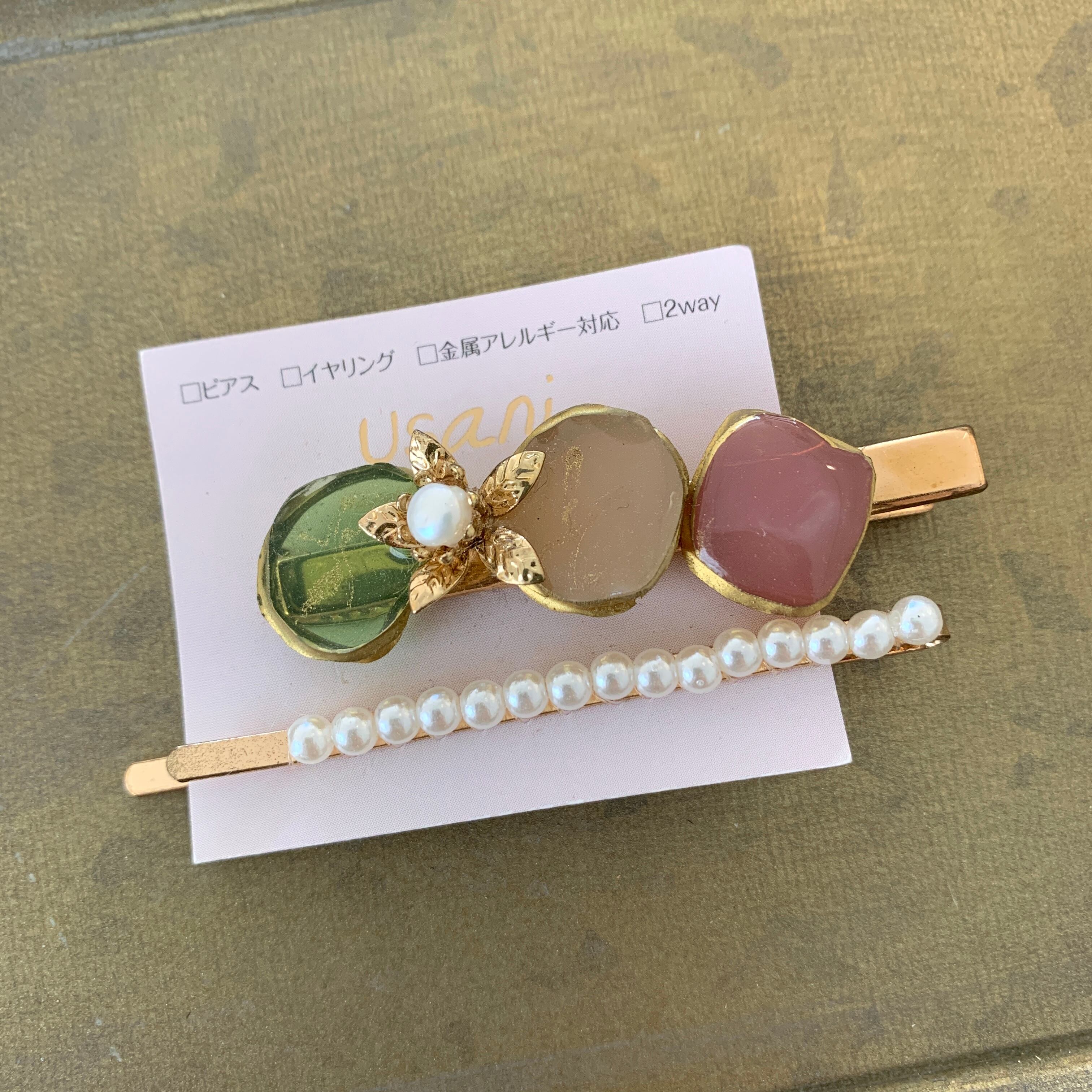 宝石アゲートヘアクリップセット 182