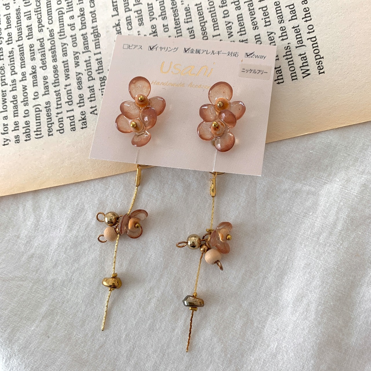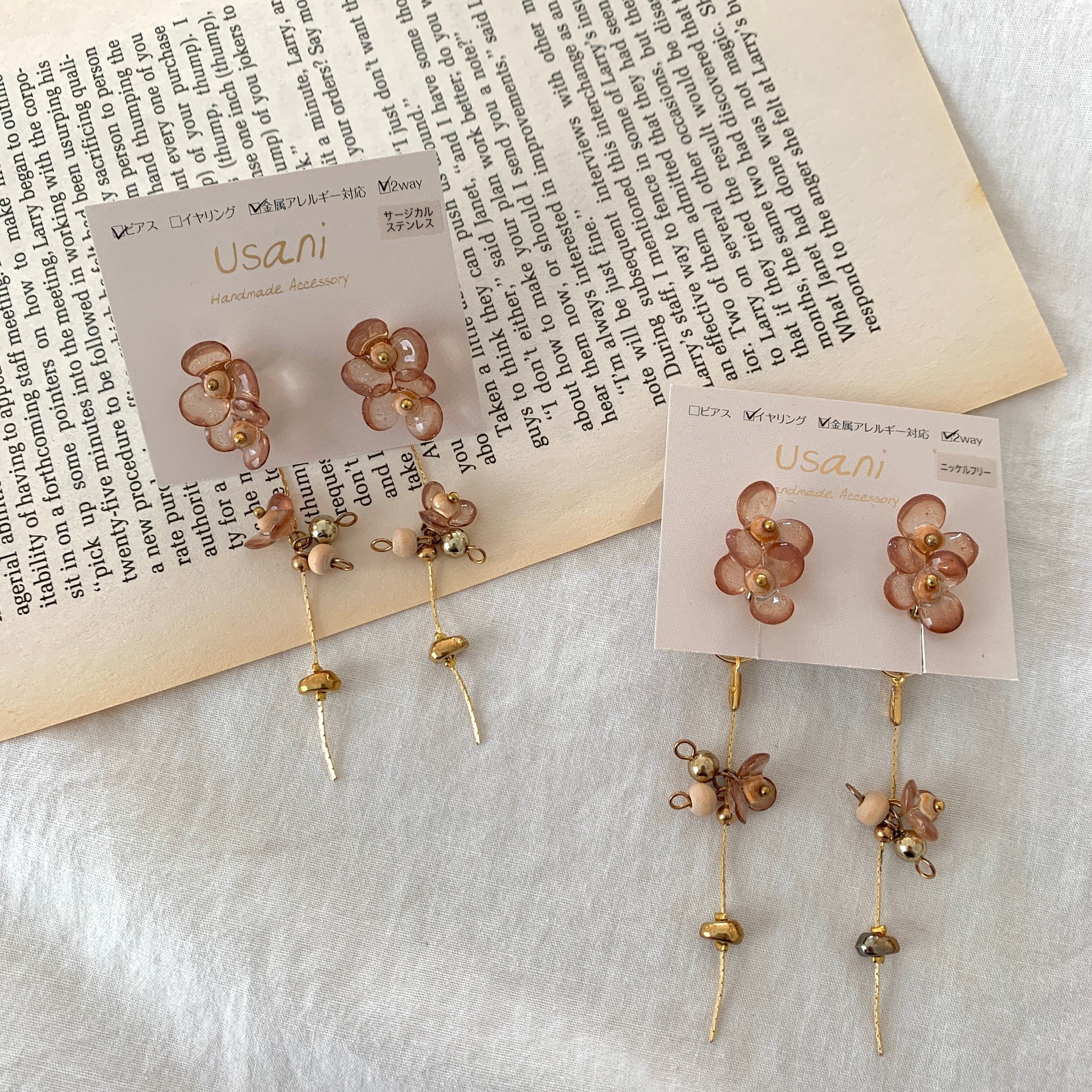 大人のクリアブラウンフラワー2wayイヤリング 229