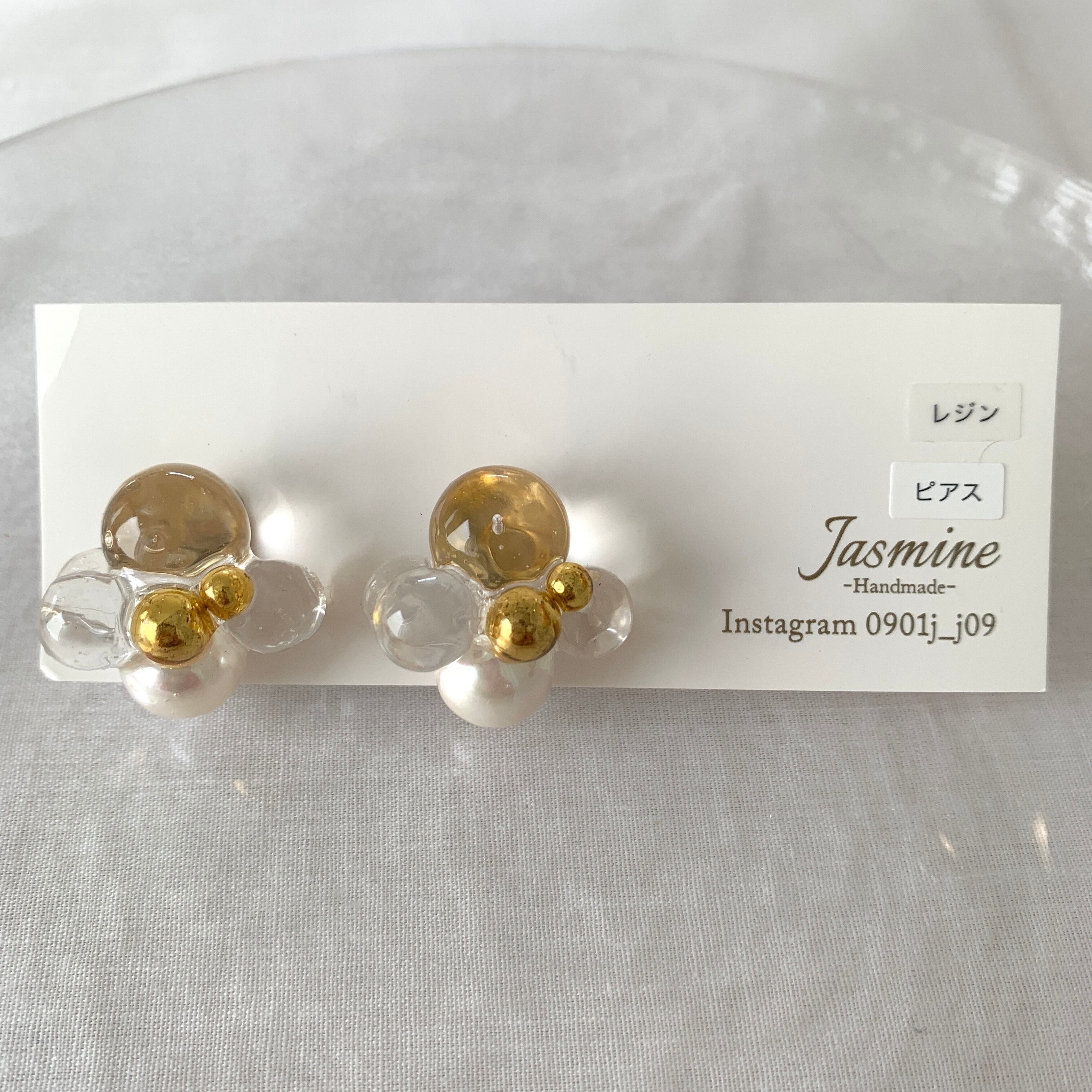 クリア×ゴールド バブルピアス 13